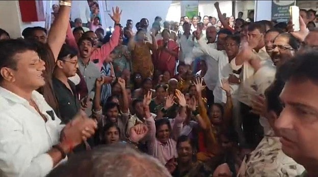 The devotees started chanting Swami's name outside the office to get the Municipal Commissioner to meet them. Finally, after a discussion between the commissioner and the Swami devotees, it was promised that the action would be stayed.