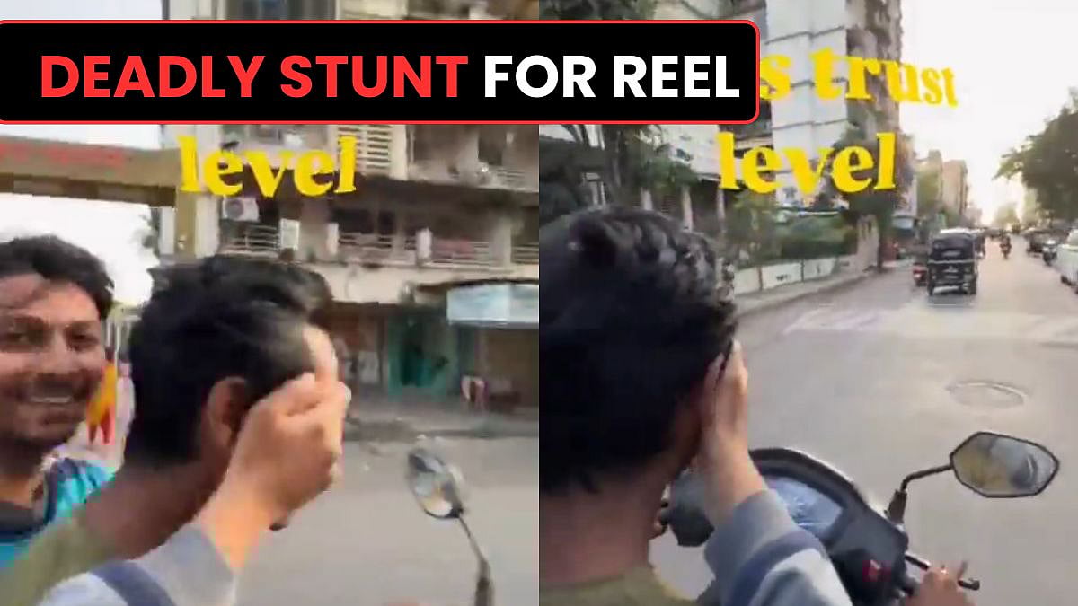 A shocking video from the Mankoli bridge connecting Thane and Dombivli has triggered widespread anger after it surfaced online. The clip shows a group of youths performing a reckless stunt on a moving two wheeler, allegedly to create a social media reel.