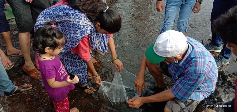 Ashwin Bhoir 45, an activist who join the campaign on Sunday said, "Releasing fishes in Ulhas river is one of the different project or campaign we take place to keep the water clean. We as a team on sunday visit the river to clean the water plants that grow in the river. Many activists keep complaining about the pollution carried out by garments and chemical factories release pollutant water in the river. Any action last for a month and again the same pollution repeats. Hence, we come up with different initiative to keep the river clean," added Bhoir.