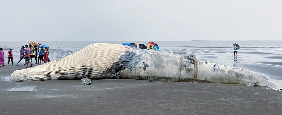 Meanwhile, the unusual sight attracted lots of locals trooping there to click selfies or videos featuring the massive dead marine mammal.
