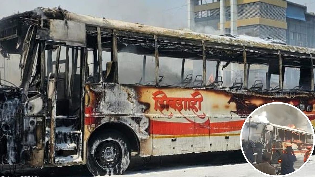 Thane, April 23: A major fire broke out on a Shivshahi bus near the busy SATIS bridge area adjacent to Thane Railway Station on Thursday afternoon. Despite the intensity of the blaze, prompt action by the bus crew ensured that all 14 passengers onboard were evacuated without injury.