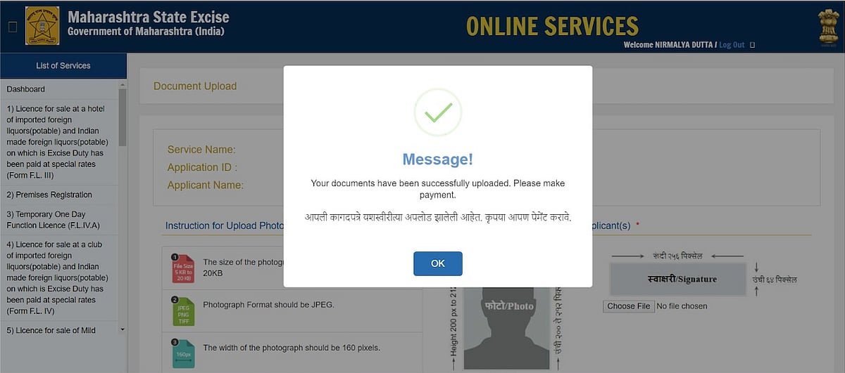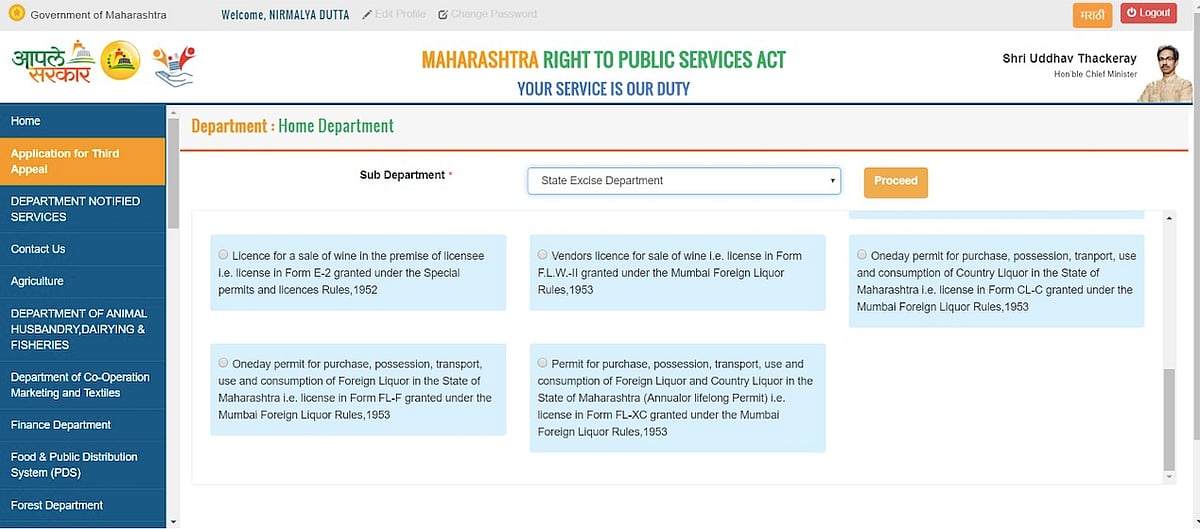 4. Now Select no. 11 “Permit for purchase, possession, transport, use and consumption of Foreign Liquor and Country Liquor in the State of Maharashtra (F.L. X-C)