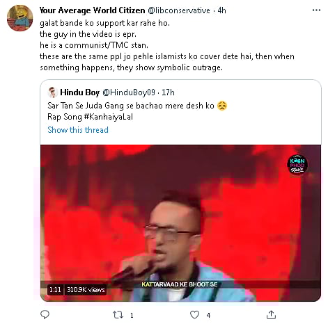 The MTV Hustle fame artivist [wordplay of activist and artist] in his rap condemns Kanhaiyalal's murder over his social media post supporting suspended BJP leader Nupur Sharma.
