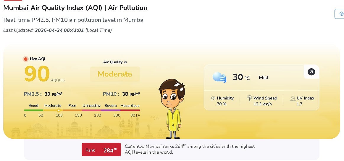 Even as temperatures rise, Mumbai’s Air Quality Index stands at 90, placing it in the moderate category. Key pollutants include PM2.5 at 30 micrograms per cubic metre and PM10 at 38 micrograms per cubic metre. Other pollutants such as nitrogen dioxide, sulphur dioxide and ozone remain within controlled limits, offering some relief amid the heat.