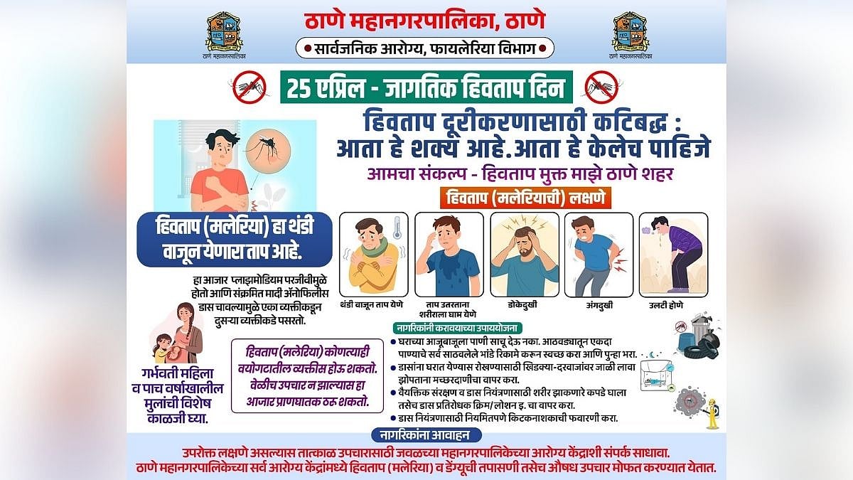 Thane, April 23: In observance of World Malaria Day on April 25, the Thane Municipal Corporation (TMC) has intensified its campaign to eradicate malaria.