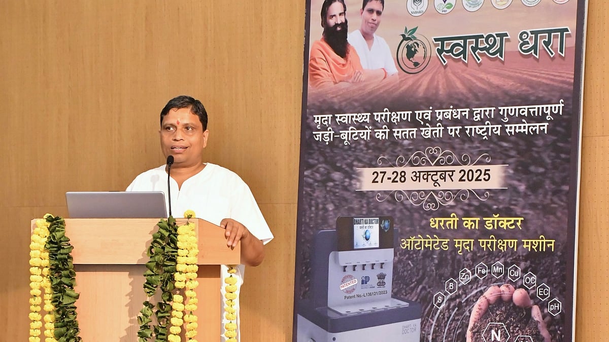 October 28, 2025: Under the aegis of the Ministry of AYUSH, Government of India, Patanjali Organic Research Institute and ICAR-1, with the cooperation of National Bank for Agriculture and Rural Development (NABARD) and in joint effort with Bhurva Agriline, a two-day national workshop on “Quality Cultivation of Medicinal Herbs through Soil Health Testing and Management” under the “Healthy Earth” scheme was successfully held on October 28 at the Patanjali Research Foundation and Patanjali University Auditorium.