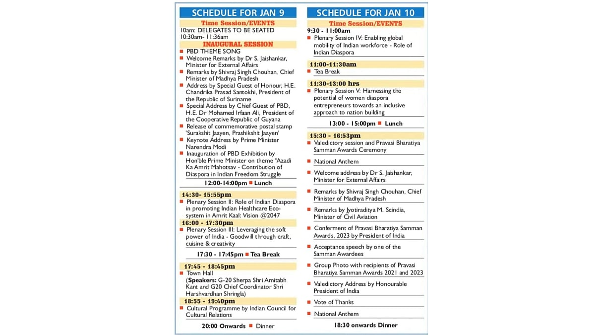 On the third day that is January 10, the conference will conclude with the presentation of the Pravasi Bharatiya Samman Awards and a speech by the President Droupadi Murmu.