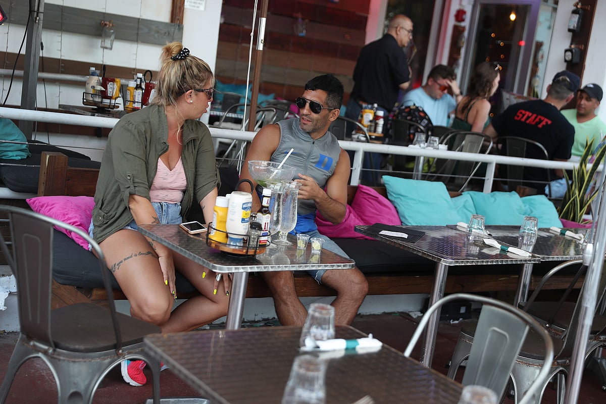 Jasmine Cunningham (L) and Tadarius Stodghill enjoy a drink at a restaurant along Ocean Drive in Miami Beach, Florida. | Joe Raedle/Getty Images/AFP