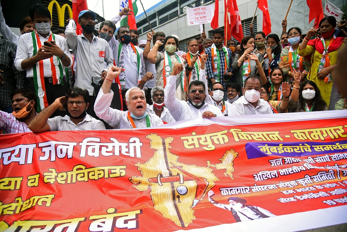 In Mumbai, Congress workers, holding placards, assembled at some places like Andheri and Jogeshwari and shouted slogans against the farm bills, but shops and other commercial establishments were open as usual and traffic movement was normal, they said.