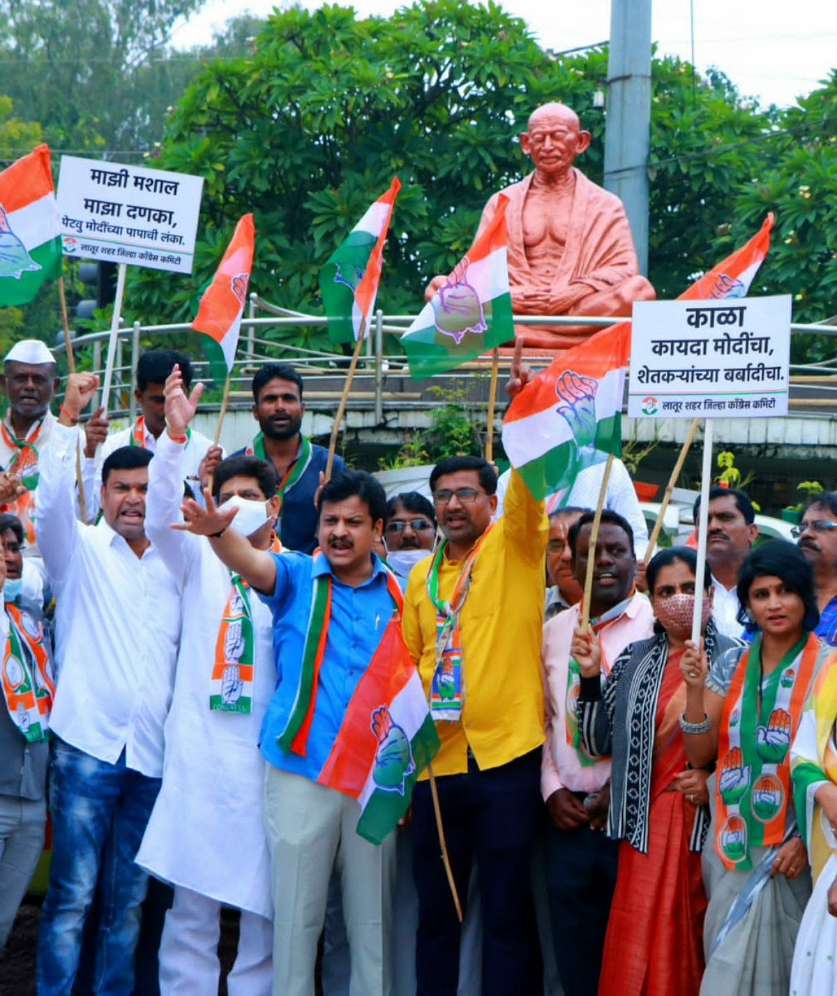 In Yavatmal, Congress leader Manikrao Thakre and former minister Vasant Purke along with workers of the NCP and other parties staged a demonstration at the Sanvidhan square against the Centre's three farm laws.