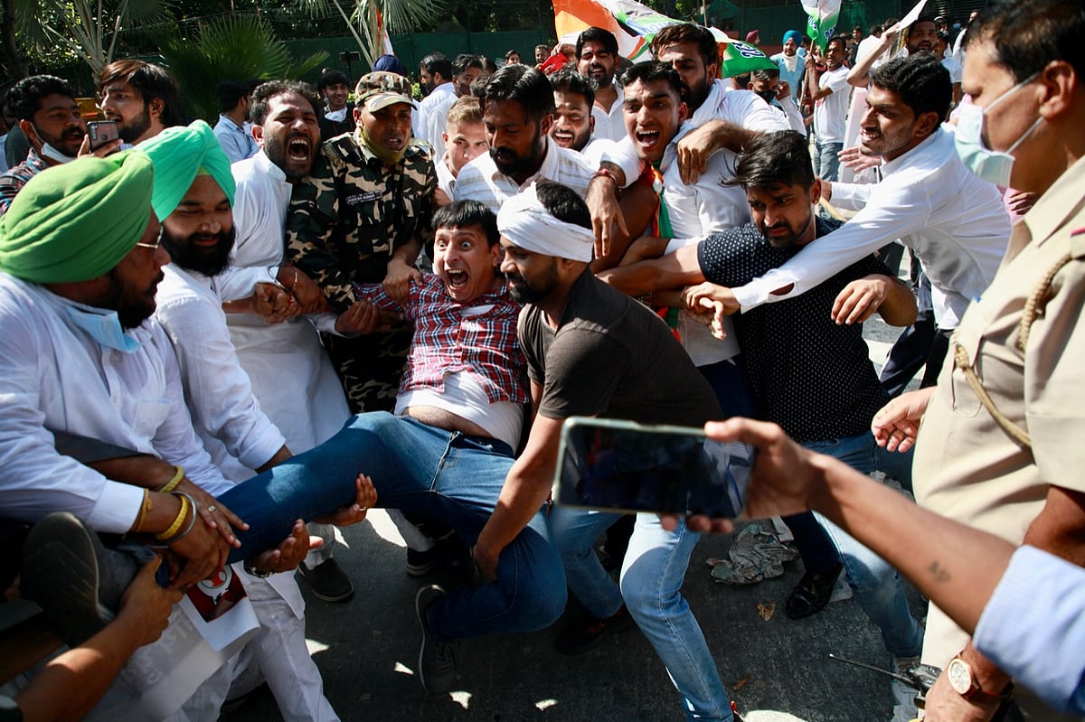 Youth Congress workers protesting outside Home Minister Amit Shah's house were arrested. | Twitter/@IYC