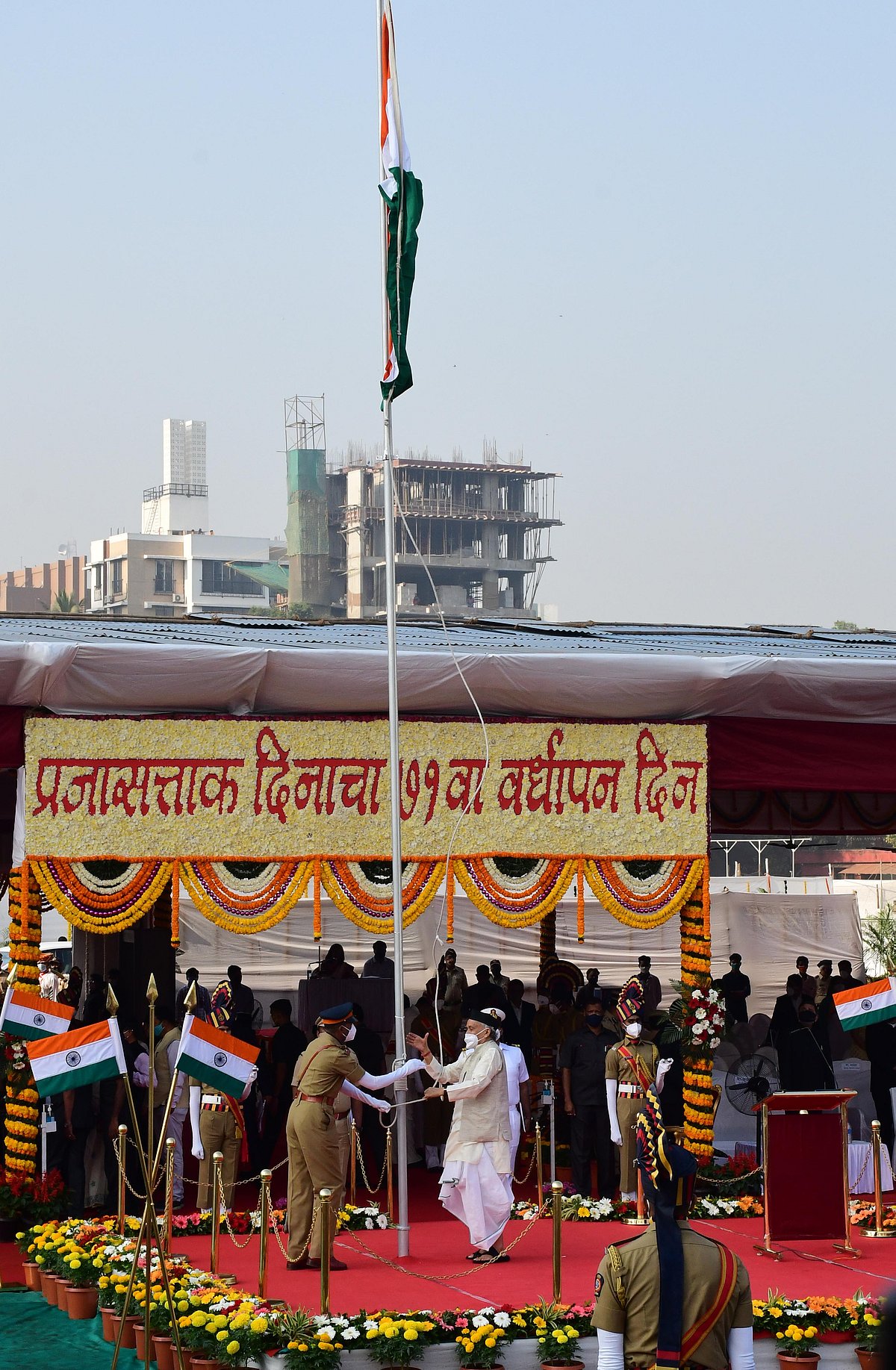 Governor Bhagat Singh Koshyari led the state by unfurling the Tricolour and took the salute at the historic Shivaji Park in the presence of Chief Minister Uddhav Thackeray, his wife Rashmi Thackeray and other top dignitaries.