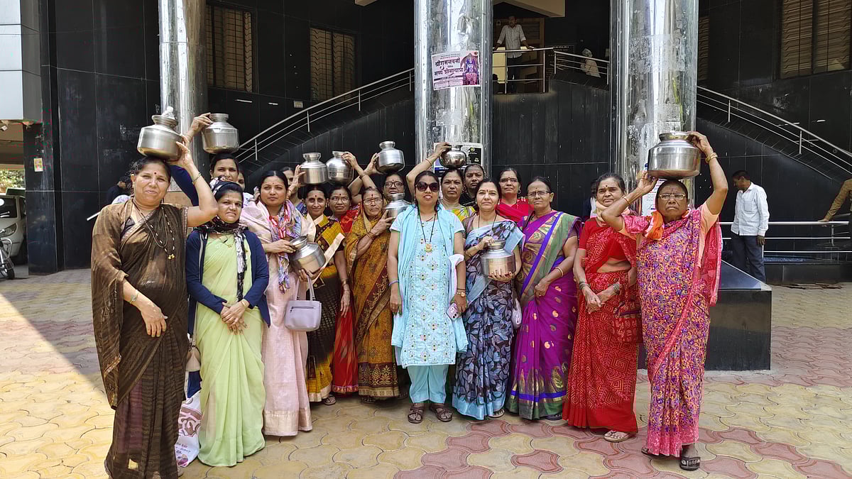 Beed: Women residents of Sant Dnyaneshwarnagar staged a protest in front of the Beed Municipal Council on Wednesday morning, demanding a regular supply of drinking water.