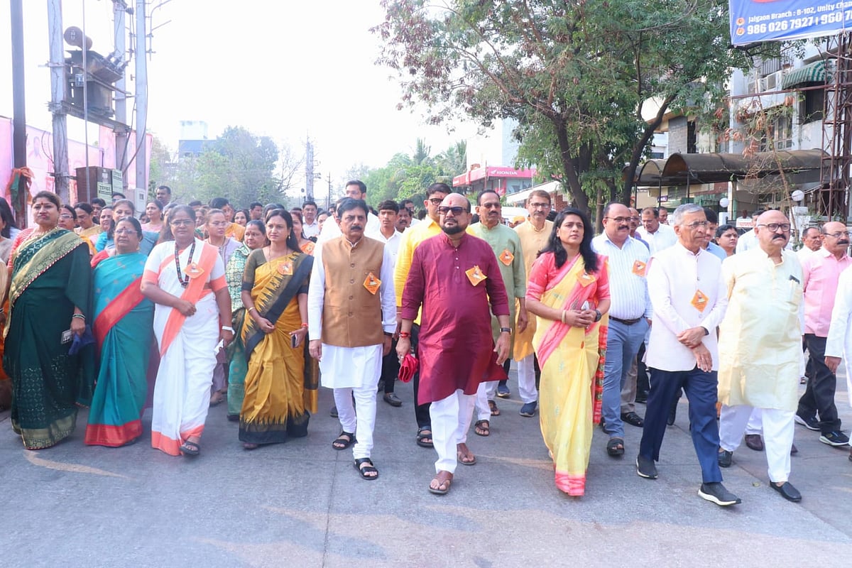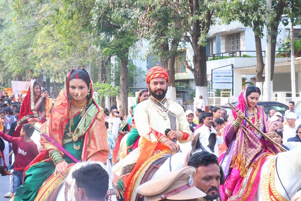 Jalgaon city wore a festive saffron hue as 35 processions were organised across various parts of the city. The celebrations concluded with an exhibition of historical documents and weapons at Shivtirth Maidan. In the evening, a cultural programme was held at Chhatrapati Sambhajiraje Natyagriha, while painting competitions and fort-making activities organised earlier received an encouraging response from participants.
