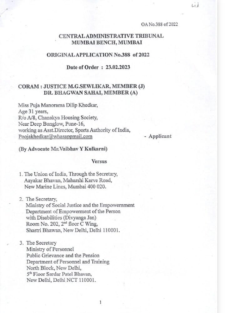 Khedkar, a 34-year-old who cleared the UPSC civil service exam under the Other Backward Classes (OBC) and Persons with Benchmark Disabilities (PwBD) categories, claimed she belonged to the non-creamy layer and cited visual and mental disabilities. However, she did not undergo required tests to confirm her PwBD status. The UPSC contested her selection, leading the Central Appellate Tribunal (CAT) to rule against her in February 2023.