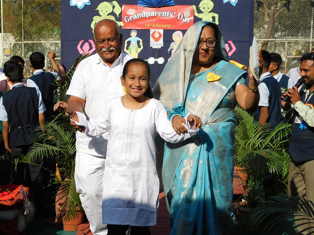 The school's principal, Manasi Gagadani, says that grandchildren want grandparents who are not seen in a divided family. Keeping in mind their love and importance in the home and keeping in mind the intention of getting them a place of honour in the home again, this school has been celebrating this day as "Grandparents' Day" in various ways and at various places for the last 23 years. This is the only school to celebrate this. Realising that celebrating Valentine's Day is not our culture, the founding president of this school, Anagha Gagadani, started celebrating this day as Grandparents Day 23 years ago.