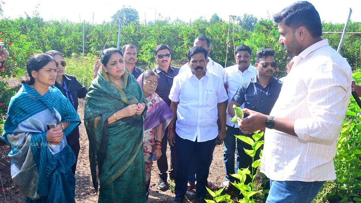Pawar visited villages such as Pandare and Dhumalwadi early in the morning and inspected damaged fields. She interacted with farmers, listened to their concerns, and reviewed the extent of crop losses.