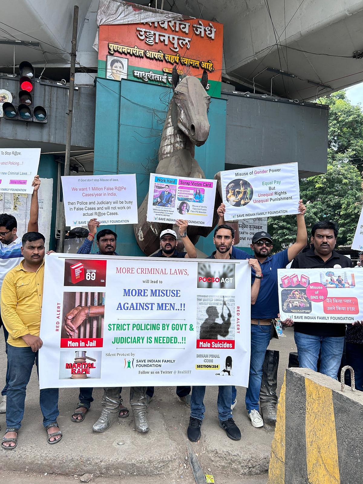 Activists of the Save Indian Family Foundation (SIFF), a men's rights NGO, took to the streets in Pune on Saturday to protest against the "ongoing gender war against men by society, government, and judiciary, and to address the misuse of rights, power, and law by feminists and women."