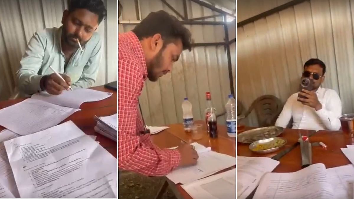 Latur, April 16: Teachers from a private school in Latur have been terminated after a video allegedly showing them checking students’ exam papers at a roadside dhaba while smoking and consuming alcohol went viral on social media.