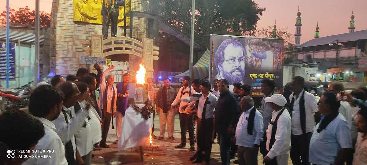 The agitators burned an effigy of Shah at Dr. Babasaheb Ambedkar Chowk in the city and also slapped Shah's portrait with chappals. They shouted slogans against Shah.