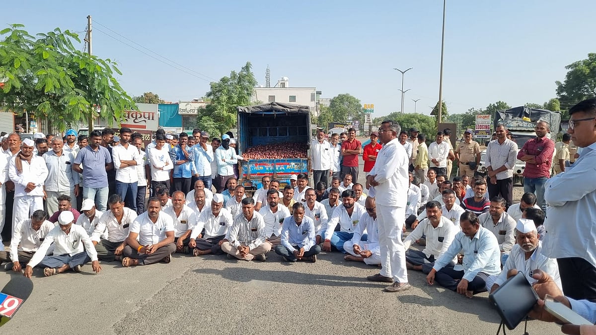 At this time, the farmers shook the area with slogans like "Give guaranteed price to onion", "Stop anti-farmer policies", "Give value to farmers' hardwork". The protest was led by the local office bearers of the Swabhimani Shetkari Sanghatana.