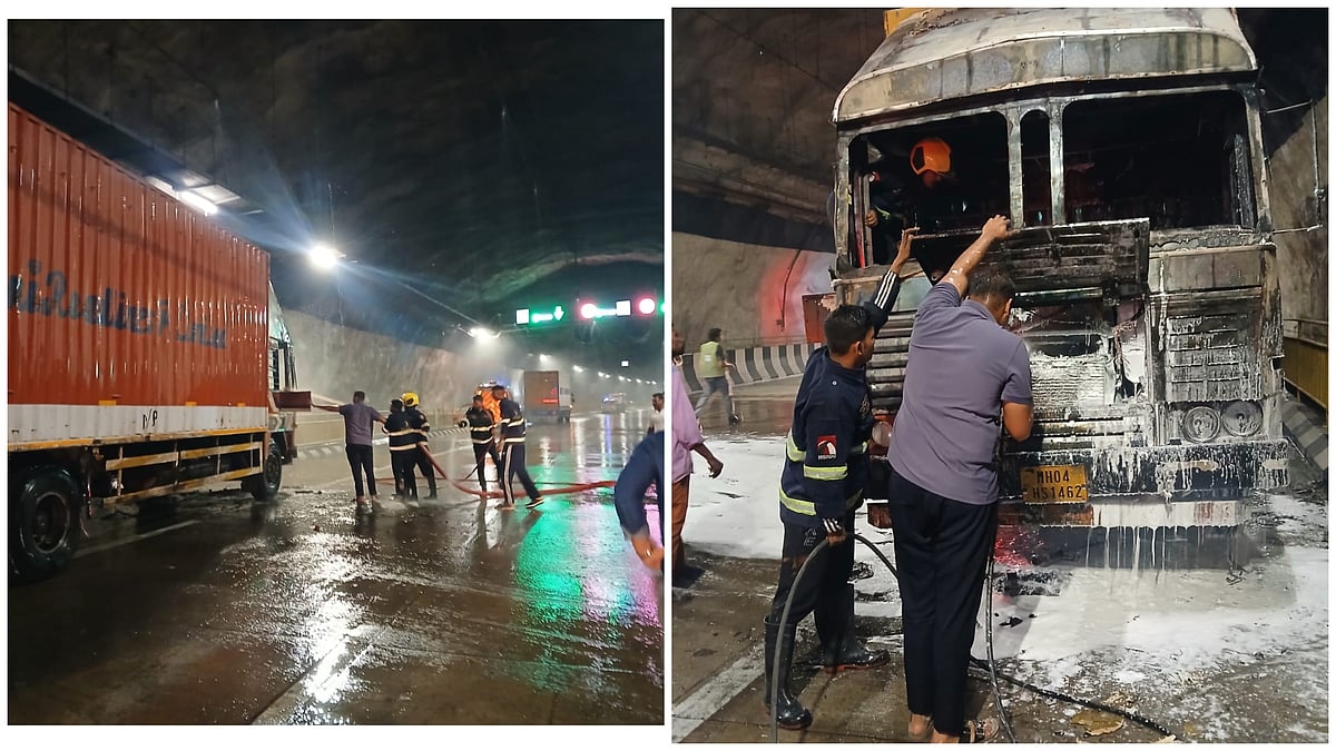 This information was given by Police Sub-Inspector Panjabrao Salunkhe of Ghoti Police Post. The exact cause of the fire is being investigated, and it is possible that it was a technical fault in the engine or some other reason. A major accident was averted as the fire extinguishing system in the tunnel on the Samruddhi Highway was activated.