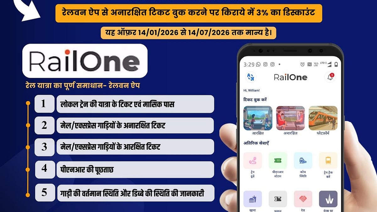 As unreserved ticket booking has been fully integrated into the RailOne app, passengers will no longer need to use multiple apps. To encourage adoption, a 3% discount on unreserved ticket booking is being offered on a trial basis up to June 14, 2026.