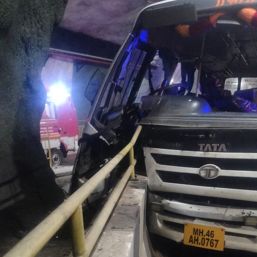 The driver fell asleep, and the bus hit the side barricade. The bus was going to Shegaon from Karjat for darshan. The injured have been admitted to Igatpuri Rural Hospital, and the highway police moved the accident bus with the help of a crane and smoothed traffic.