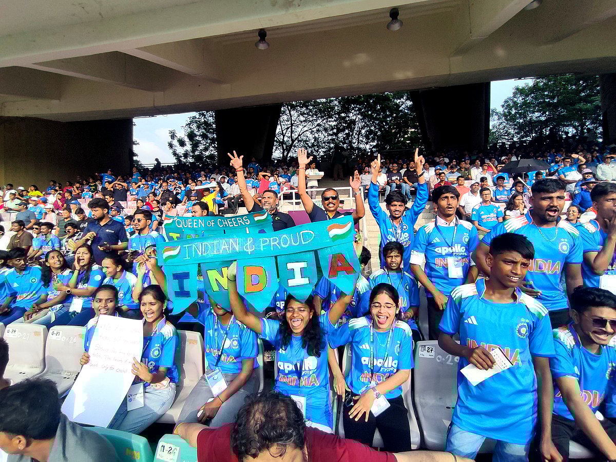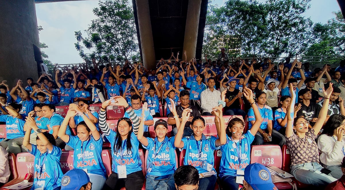 During the India vs Australia semi-final match of the Women’s World Cup held on Thursday at the DY Patil Stadium in Nerul, Navi Mumbai, around 300 students from three Pune-based schools filled the stadium with energy and enthusiasm.