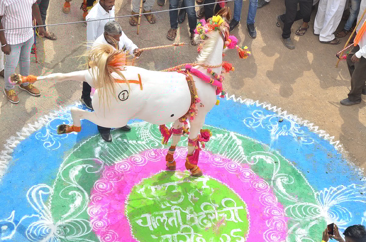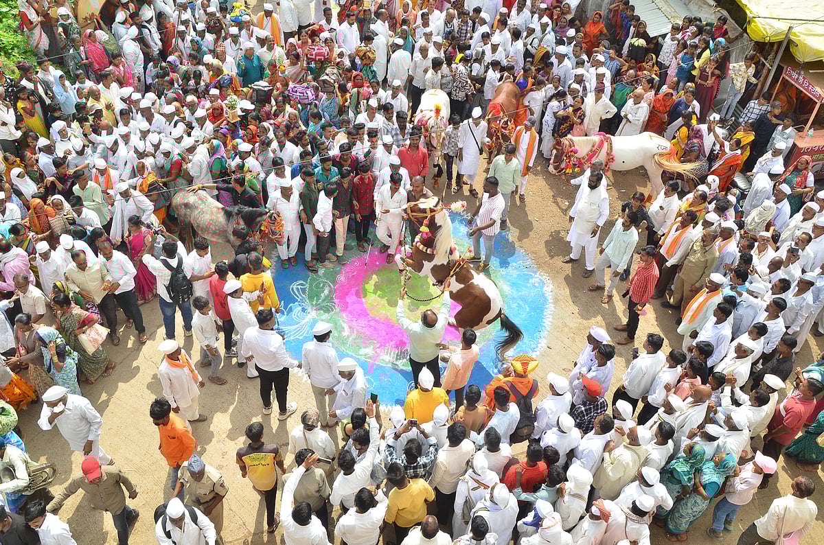 Many people had tears in their eyes while experiencing the grandeur of the palkhi ceremony. The horses dancing in front of the palkhi, the rhythmic tune of the veena players, the sound of the mridangam, women carrying tulsi pots on their heads, the continuous chanting of "Vithu Nama" by the devotees, the rangolis and flower decorations drawn at different places to welcome the palkhi -- made the entire atmosphere devotional and spiritual.