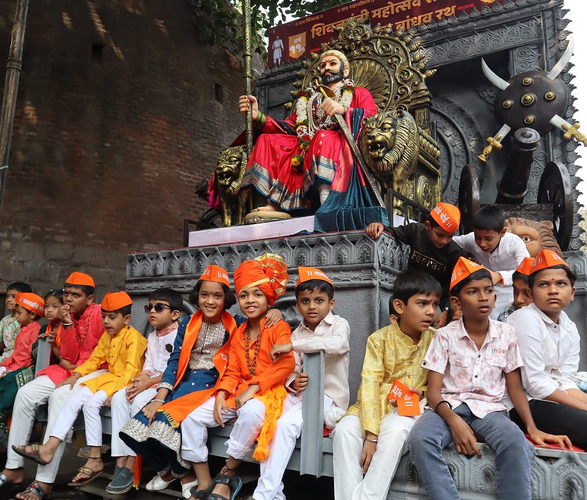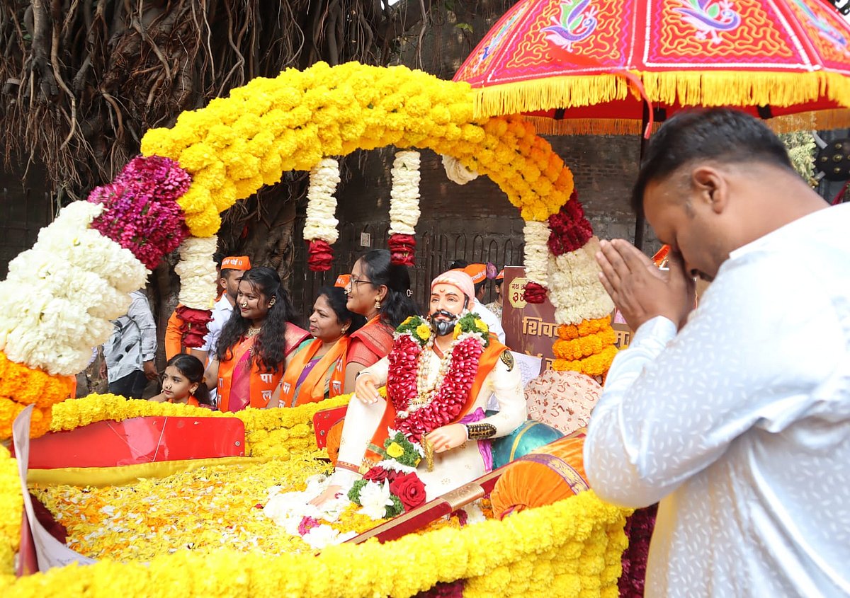There were live demonstrations of traditional sword-fighting skills, where performers enacted moments reminiscent of the rich Maratha history. The decorated palki carrying the idol of Chhatrapati Shivaji Maharaj, adorned with flowers and traditional ornaments, moved through the procession routes, and devotees offered prayers with folded hands.