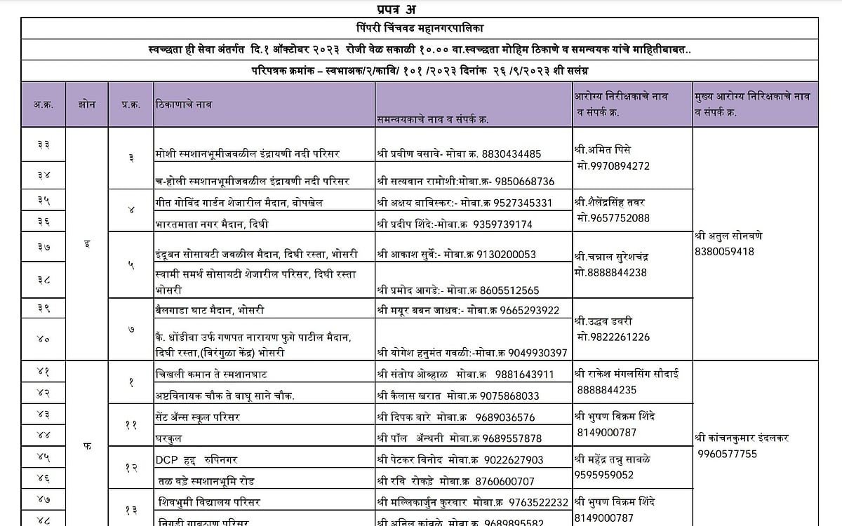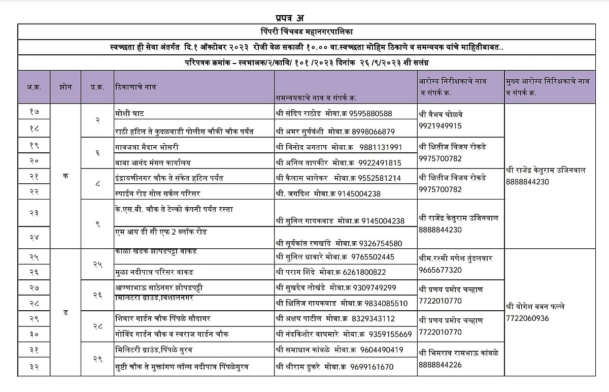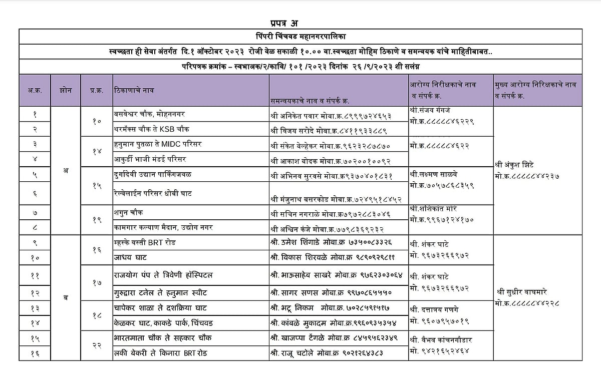 The PCMC, on its official X (formerly Twitter) handle, wrote, "The Pimpri Chinchwad Municipal Corporation (PCMC), in order to make our city clean and beautiful, 'Ek Taas, Ek Saath' campaign has been organised on October 1, 2023, at 10 am. All citizens are requested to attend in large numbers."