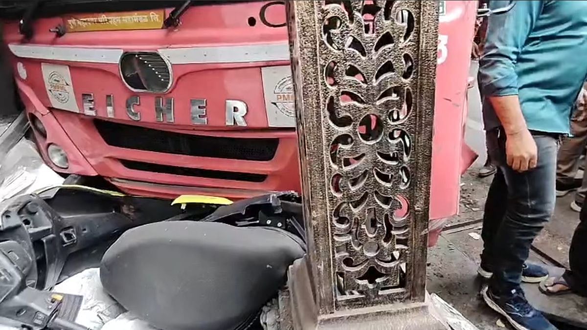 Pune: A shocking incident unfolded in the busy Appa Balwant Chowk area on Tuesday, after a speeding Pune Mahanagar Parivahan Mahamandal Limited (PMPML) bus lost control and rammed straight into a shop.