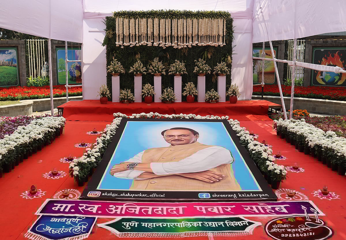 A special rangoli tribute has been created in memory of the late Ajit Ashatai Anantrao Pawar, Deputy Chief Minister of Maharashtra.