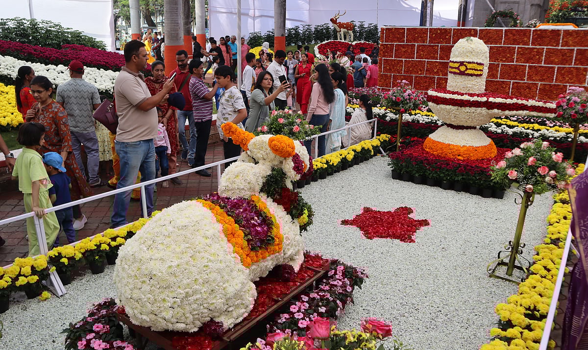 The exhibition features bonsai displays, theme-based gardens, floral arrangements and creative installations made from recycled materials such as waste tyres and plastic bottles. Attractions include a flamingo garden, Zen garden, constellation garden, waterfall feature garden, backyard and fruit house concepts, and a floral artwork of Bharat Mata marking the 150th anniversary of the song Vande Mataram.