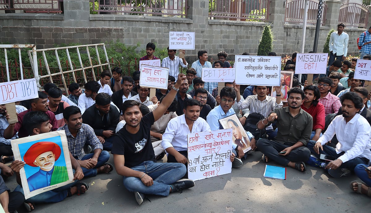 The students of Dr Babasaheb Ambedkar Boys Hostel staged a protest outside the Pune Municipal Corporation (PMC) main building on Friday, holding placards that read “DBT DBT” and raising loud slogans demanding the timely disbursal of their Direct Benefit Transfer funds. Several students carried photo frames of Dr Babasaheb Ambedkar, while others held pictures of Savitribai Phule and Mahatma Jyotiba Phule, symbolising their struggle for educational rights and dignity.