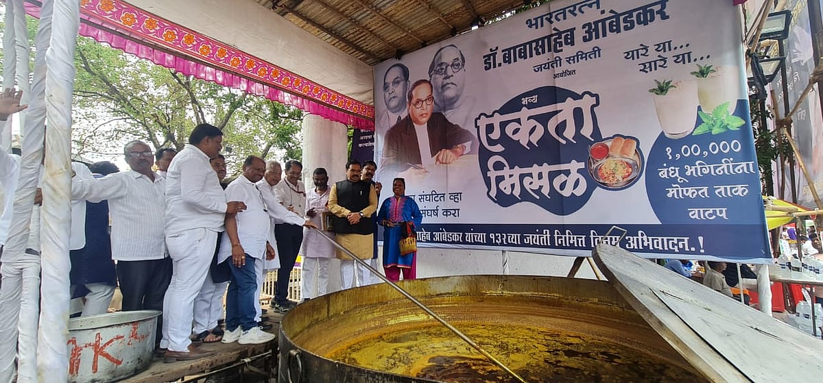 At a celebration function organised by Krantisurya Mahatma Jyotiba Phule and Bharat Ratna Dr Ambedkar Jayanti Committee, 5000 kilograms of 'misal pav' (spicy stew of beans, potatoes etc) was prepared by popular chef Vishnu Manohar along with one lakh glasses of buttermilk. The way he had joined Manohar on Mahatma Phule's Jayanti, Patil also joined him on Ambedkar Jayanti as well.