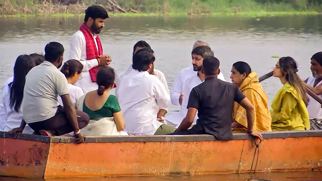 Earlier on Friday, the late politician's sons Parth and Jay collected his ashes from the funeral site. Seated in a small boat, the Pawar family members then proceeded to the Nira-Karha confluence near Baramati, where the ashes were immersed by his elder son, Parth.