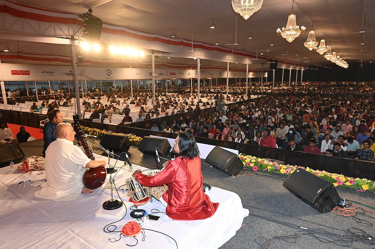 The last day of the 71st Sawai Gandharva Bhimsen Mahotsav started with Pandit Upendra Bhat with Raag Asavari (Komal Rishabh). He sang ‘Sabahi Mera hot…’ in Vilambit Ektaal, followed by ‘Mein to tumaro Dasi…’ in drut Teental. He then sang a Raag Hindol Bahar Bandish, ‘Koyaliyan bole chale jaat…’, in Teental. He then sang a Kannada bhajan followed by a traditional Warkari Abhanga, ‘Samacharana tujhe dekhile…’. He ended his power-packed performance with the Abhanga ‘Yach sathi kela hota attahaas…’. He was accompanied by Niranjan Lele on harmonium, Sachin Pawgi on tabla, Ramakant Paranjape on violin, Ganesh Chakankar on pakhawaj, along with Vinayak Hegde and Dhananjay Bhate on tanpura.