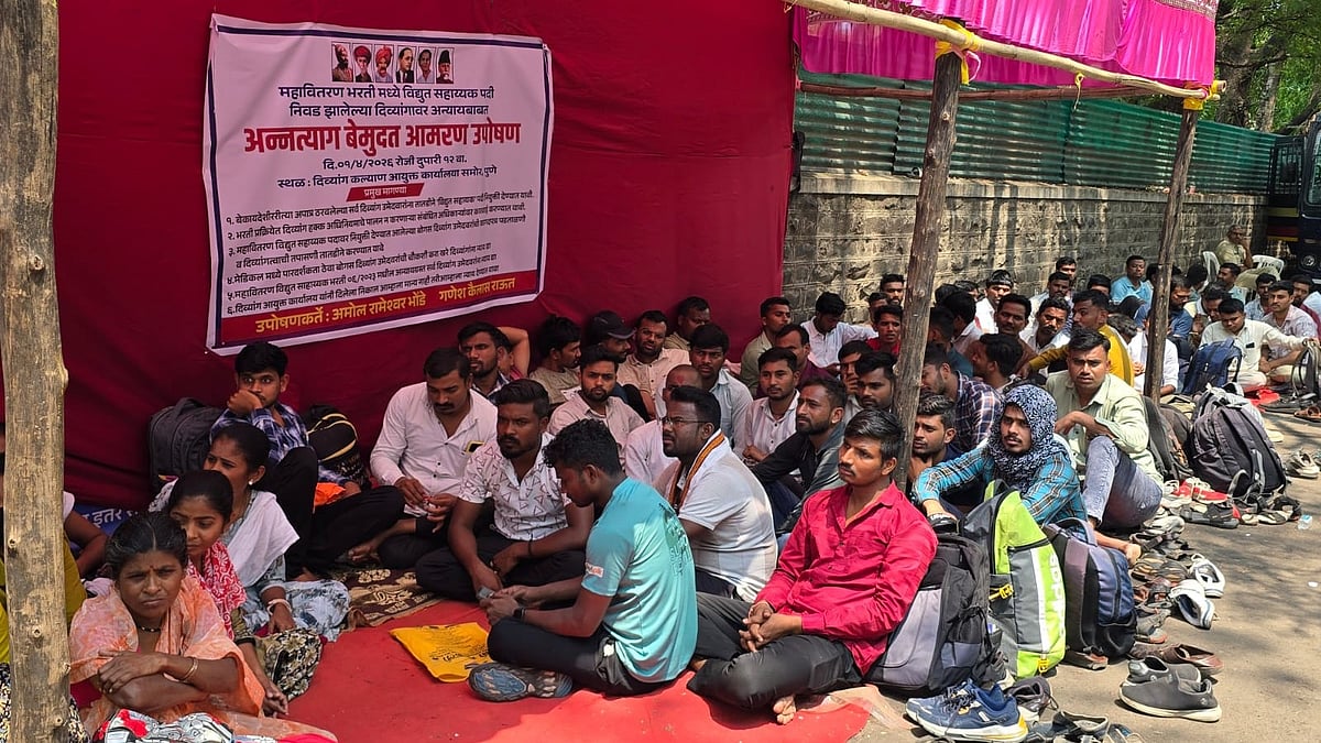 Hundreds of PwD (persons with disabilities) candidates sat on a hunger strike in front of the Commissionerate for Empowerment of Persons with Disabilities, Maharashtra State, Pune Office, on Thursday after facing alleged injustice and irregularities in the recruitment process for Vidyut Sahayak posts in Maharashtra State Electricity Distribution Company Limited (MSEDCL). Several PwD candidates have raised concerns over transparency and fairness in the hiring process.