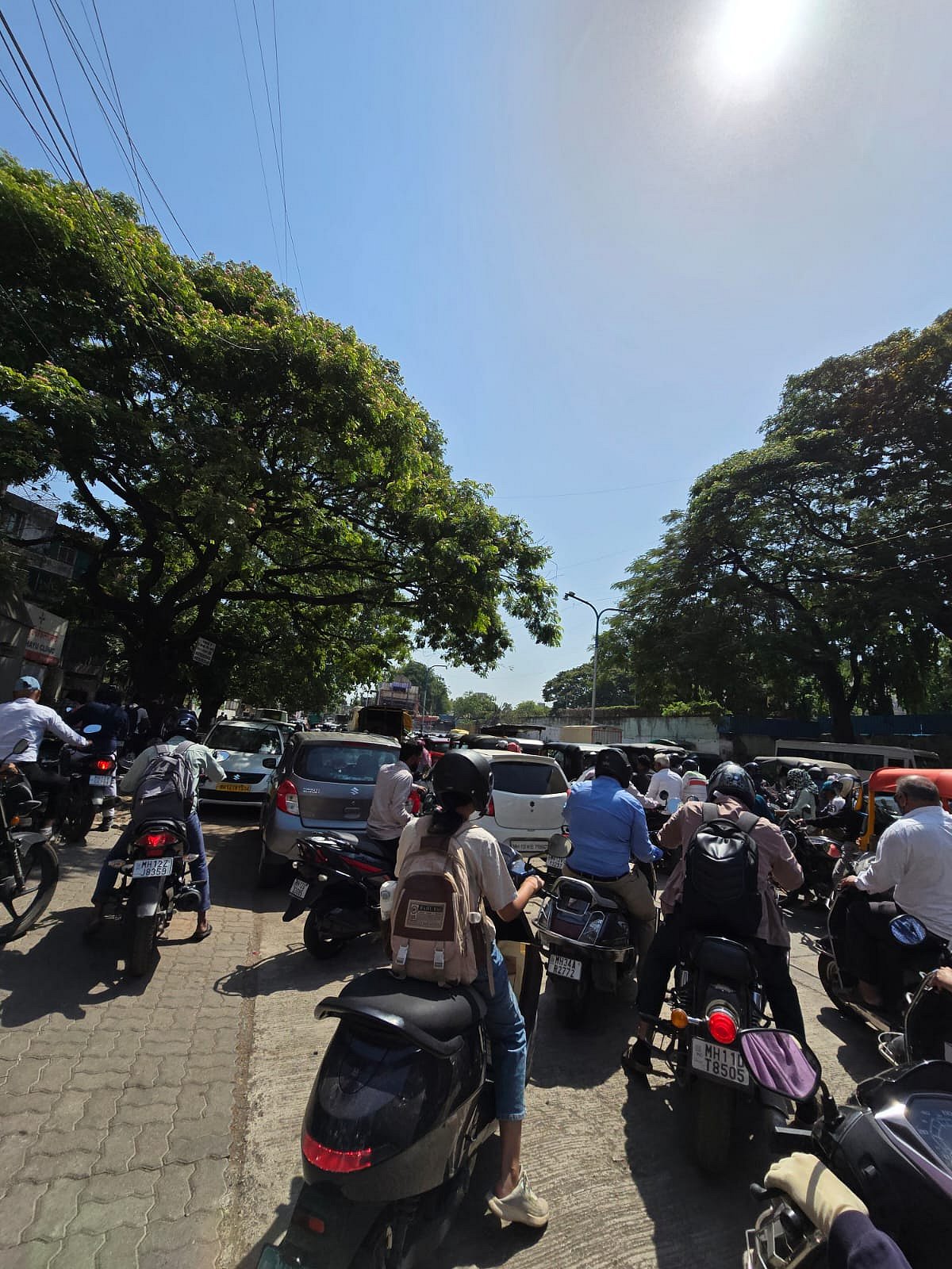 Mahesh Shete, another commuter, said, "From Rajaram Bridge to Mitra Mandal Chowk, the traffic speed became slow, and in the scorching heat, people are forced to bear it. Permission to block one side of the road should not be given, or traffic police should be there to manage the traffic."