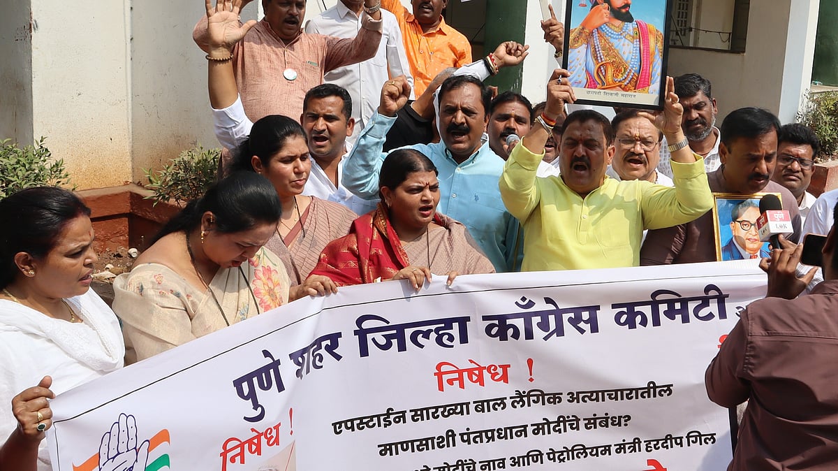 Pune: Tipu–Chhatrapati Shivaji Comment Triggers BJP–Congress Clash, Stone Pelting Outside Congress Bhavan | PHOTOS | Anand Chaini Photo