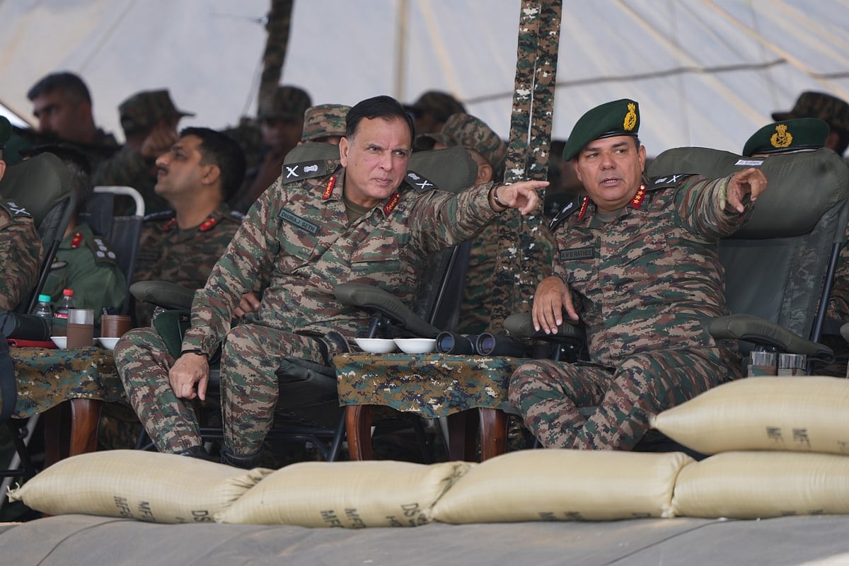 Lt Gen Dhiraj Seth, PVSM, AVSM, General Officer Commanding-in-Chief Southern Command, reviewed the operational preparedness of Konark Corps during Exercise Akhand Prahar, conducted in the Desert Sector as part of the Tri-Services Exercise Trishul.