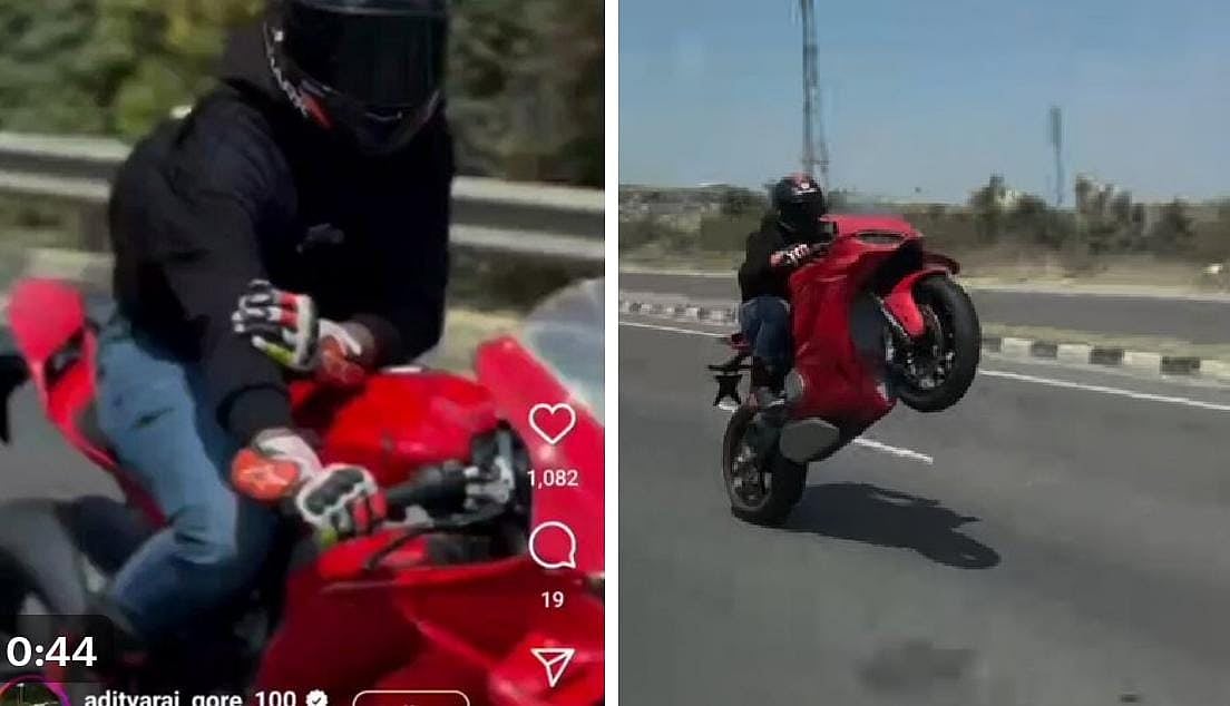One of the X users, Bhaiya Patil posted these video on social media and they show son of Gore, Adityaraj doing risky bike stunts that might seriously endanger his life as well as the safety of others.