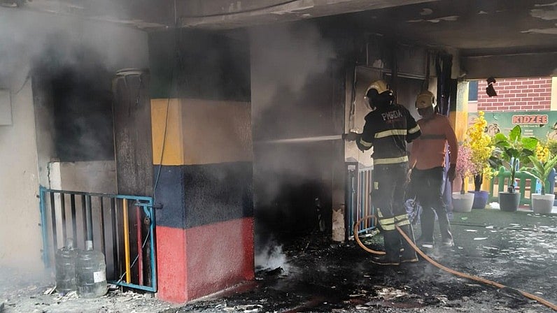 They found two gas cylinders inside the school premises. One of them had blasted due to the fire, while the second was safely removed.