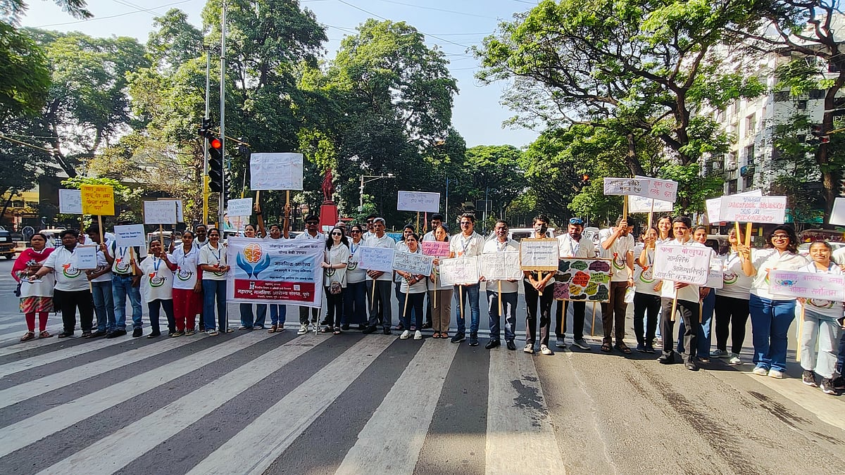 On the occasion of World Mental Health Day on Friday (October 10), the Maharashtra Institute of Mental Health, Pune, organised a human chain and a street play on Jangali Maharaj Road. The event aimed to promote public awareness and understanding of mental health among citizens.