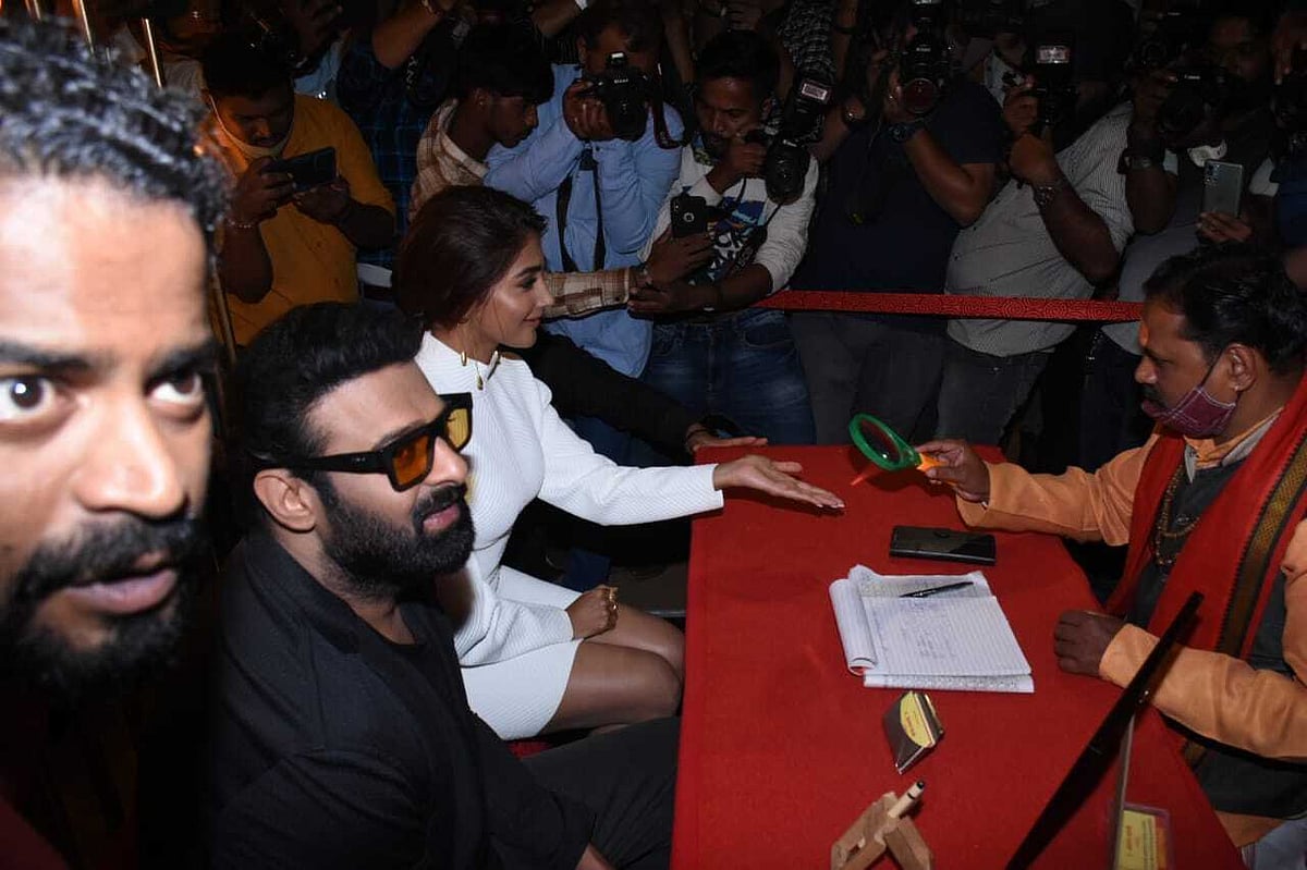 Before heading for the trailer launch of the film, Prabhas and Pooja Hegde met the astrologer who was present at the spot and got him to read their palms.