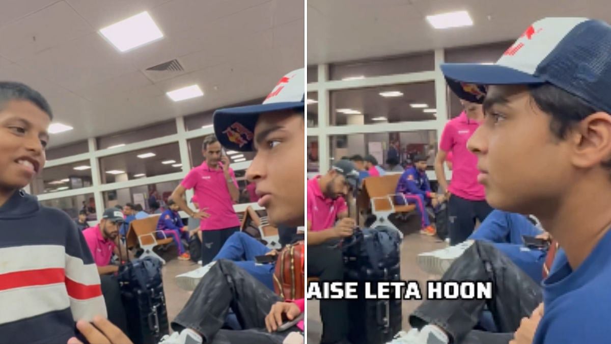 Vaibhav Sooryavanshi pulled off a hilarious prank on two young kids who asked him for photos at the airport. The 15-year-old was seated when two young boys approached him, hoping to click selfies. Sooryavanshi told them that he charges money to click pictures and demanded ₹100 from them. When the kids walked away, the RR star revealed his prank and then proceeded to pose with them.