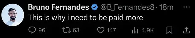 Manchester United captain Bruno Fernandes’ official X account was compromised late Sunday, causing a series of bizarre and unrelated posts to flood his timeline to over 4.5 million followers. The unusual activity began around 11 pm GMT, with hackers initially posting about cryptocurrency projects before the content quickly turned chaotic and provocative.