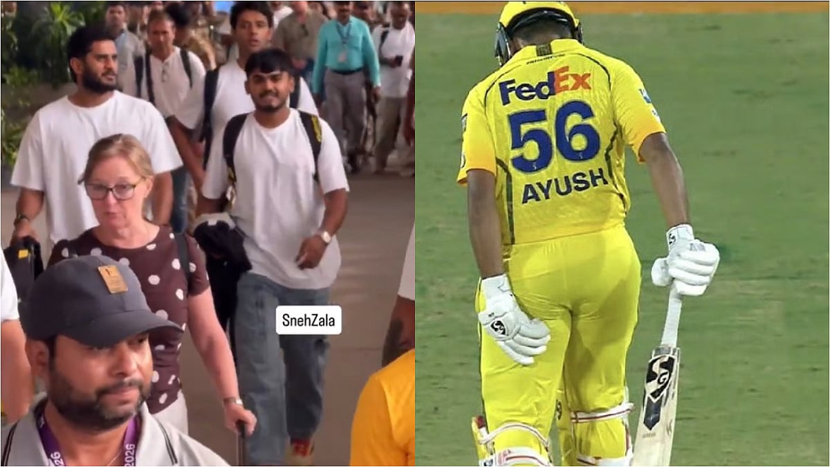 The viral video shows the team arriving at the Mumbai Airport for the clash against Mumbai Indians on Thursday (April 23) At Mumbai's Wankhede Stadium. Ayush Mhatre also arrived with the team at the airport and he was seen walking with discomfort which has raised doubt over his availability for the game against Mumbai Indians.